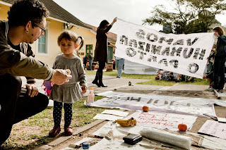 Família no ativismo: Frank, Clara e eu (segurando a bandeira).