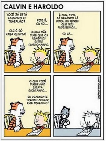 Quem trabalha nessa área diz que o Calvin (aquele personagem, amigo do Haroldo) é o símbolo da criança diagnosticada como hiperativa. E que criança interessante! Além de ser agitado, Calvin é questionador, problematizador, respondão e arteiro. Coisas de criança saudável, muito saudável, não doente. E já notaram como são seus pais? Entediantes, rabugentos, nunca brincam com ele, estão sempre alheios, em suas atividades, sempre criticando ou gritando com ele. Isso não é coincidência. Em uma das tirinhas, Calvin aparece sendo medicado: ele não brinca mais, não cria mais, não é mais interessante e sua imaginação foi morta – representada pelo desaparecimento do amigo imaginário, seu bicho de pelúcia Haroldo, que em condições normais tinha vida.