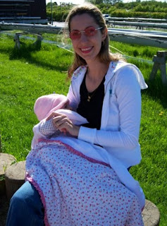 Isabella, 7 meses, mamando num parque na Dinamarca.
