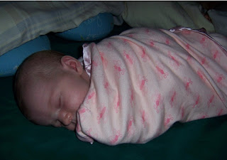 Isabella recém nascida dormindo enroladinha no cueiro, um dos passos da exterogestação