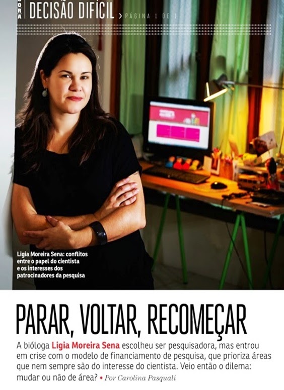 Sinto-me muito honrada em função de minha história pessoal ter sido considerada uma fonte de inspiração a outras pessoas. Embora tenha sido realmente uma decisão muito difícil, foi tomada pensando em meu presente e futuro como mulher, mãe, pesquisadora, cientista, parte de uma família, parte de uma sociedade. Pensando especificamente em uma coisa: como unir ciência, maternidade e responsabilidade civil.